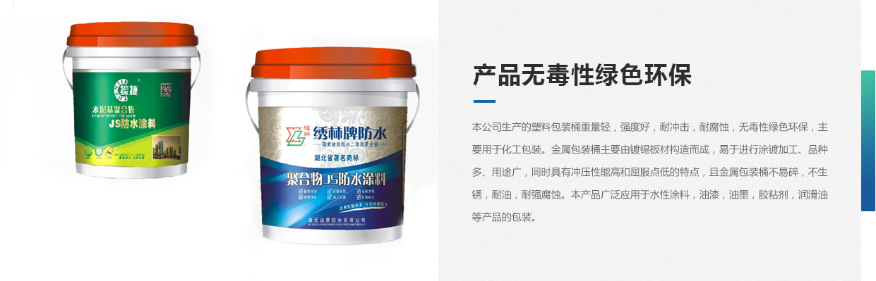 本公司生產(chǎn)的塑料包裝桶重量輕,強(qiáng)度好,耐沖擊,耐腐蝕,無(wú)毒性綠色環(huán)保,主要用于化工包裝。金屬包裝桶主要由鍍錫板材構(gòu)造而成,易于進(jìn)行涂鍍加工、品種多、用途廣,同時(shí)具有沖壓性能高和屈服點(diǎn)低的特點(diǎn),且金屬包裝桶不易碎,不生銹,耐油,耐強(qiáng)腐蝕。本產(chǎn)品廣泛應(yīng)用于水性涂料,油漆,油墨,膠粘劑,潤(rùn)滑油等產(chǎn)品的包裝。